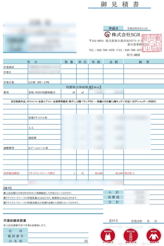 -残置物撤去 · 2021/09/27 【千葉県・流山市】残置物の撤去 今回のご依頼は、協力会社様のご紹介で現調も同行していただきました。 作業日数は2日間で、1日目にリサイクル資源・リユース品を仕分け、運び出し、そして最終日にゴミの撤去を行いました。 ※買取査定のポイント 家具と書物【書物は古紙としてのリサイクルではなく、リユースで買取出来たところが評価upになりました。】 残置物撤去前 作業後 tagPlaceholderカテゴリ: リサイクル資源, リユース, 残置物の撤去, 残置物撤去, 資源